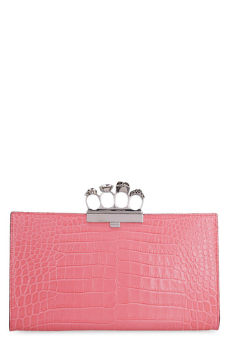 Croco-print leather clutch